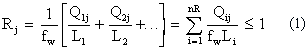 in which Rj is the total release in EPA units under scenario j, fw is the waste unit factor, Qij is the cumulative release for radionuclide I under scenario j, Li is the EPA release limit for radionuclide I, and the EPA release limit nR is the number of radionuclides contributing to the release. The EPA unit provides a more precise description of waste radioactivity than a unit like curies or becquerels, because it addresses regulatory compliance directly. The calculation of possible releases and the associated probabilities of release (under various scenarios) is presented as a complementary cumulative distribution function (CCDF), as is shown in Fig. 2.