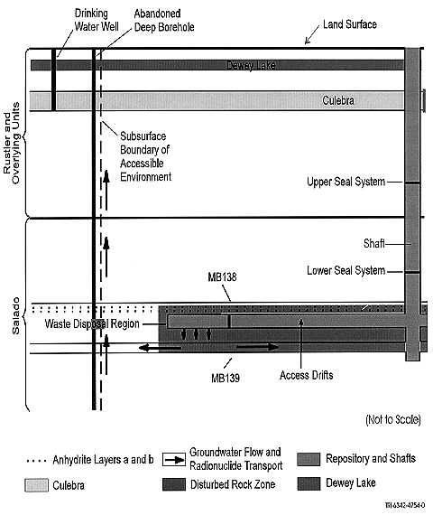Uncertainty is inherent in the calculation of radionuclide concentrations in the anhydrite interbeds and in the calculation of doses resulting from the specified exposure pathway. Given this uncertainty, the DOE has elected to perform a bounding analysis using assumptions that do not represent reality, but that would result instead in a bounding estimate that is much greater than any reasonably expected contribution of contaminants to a USDW or dose to a receptor. If this unrealistic yet bounding analysis results in calculated concentrations and doses to a receptor that are below the regulatory limit, compliance with the standard is demonstrated. The bounding analysis used for this assessment is based on the following factors and assumptions: