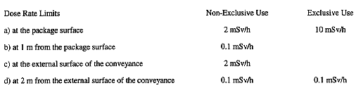 IP-2 or IP-3 waste packages must not exceed the following external radiation and contaminations limits:
