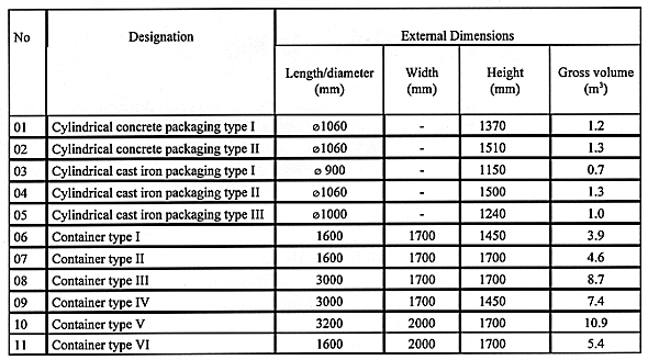 Standardized packagings are used for the transport of radioactive waste. In general a shipping unit consists of a 20' freight container which can be shipped by rail, road or sea and which may contain drums or other reusable or non-reusable package types.