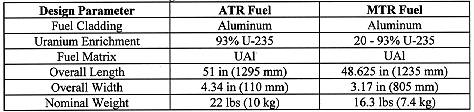 ATR and MTR fuel assemblies are each aluminum-clad, highly enriched uranium assemblies with roughly equivalent dimensional measurements. The basic design criteria for these fuel assemblies is provided in Table 2.