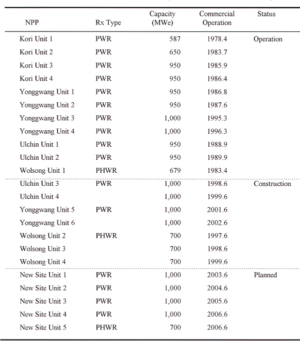 Due to the insufficient energy resources in Korea, the Korean government has selected nuclear energy as the major source of electricity supply in Korea. In compliance with the government policy, Korea Electric Power Corporation (KEPCO) established an ambitious nuclear power plant construction program. Currently, KEPCO is operating eleven nuclear power plants and constructing seven others.