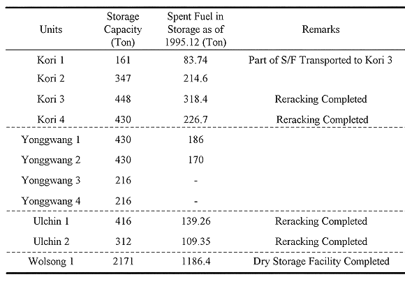 TABLE II AR Storage Capacities of Korean Nuclear