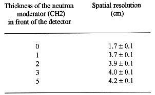 Table I Calculated spatial resolution versus the thickness of the neutron moderator (CH2) in front of the detector.