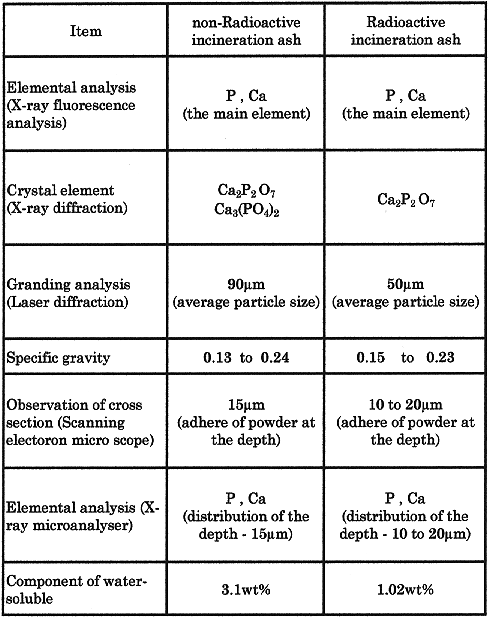 In the analysis for incineration ash, the element of radioactive ash was the same as the non-radioactive ash.
