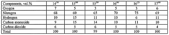 During the test off-gas flow rate was measured and gas composition was analyzed. Off-gas flow rate was measured with pneumometric tubes and micromanometer. Volume activity and weight concentration of aerosols in off-gas were determined by internal filtration technique. N2 concentration in off-gas was measured by photocolorimetric method, and CO, H2 and CO2 concentrations were determined by chromatography.