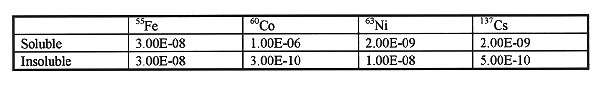 Table I Maximum Allowance of Selected Radionuclides in Air for the