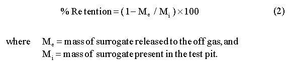 It should be noted that sampling of the off gases was not performed continuously, but rather during periods when emissions would have been at their peaks. As a result, the actual reported value for mass of surrogate released to the off-gas is most likely high. This would result in these values being conservative.