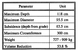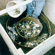 To simulate miscellaneous debris that may be present in the pits, approximately 95 l of crushed household debris was placed into the test volume (see Fig. 1). The debris consisted of broken glass, crushed metal (aluminum, tin, and some steel), and crushed plastic containers.