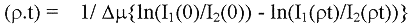 where IT(0) is the transmission peak area without attenuating material, and IT(x) is the peak area with attenuation. Once the transmission has been calculated then the attenuation correction factor can be found using the approximation
