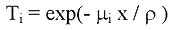 where x is the mass per unit area for the attanuating material. If we use a transmission source with a gamma ray at energy ET, then the transmission at energy Ei is given by: