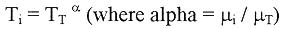 Alpha is the ratio of the gamma absorption coefficients at two energies. The transmission for the transmission source gamma peak is found by measuring the initial peak area due to the transmission source without any attenuating material and then measuring the same gamma peak area during the assay with attenuating material present. The transmission measured is then: