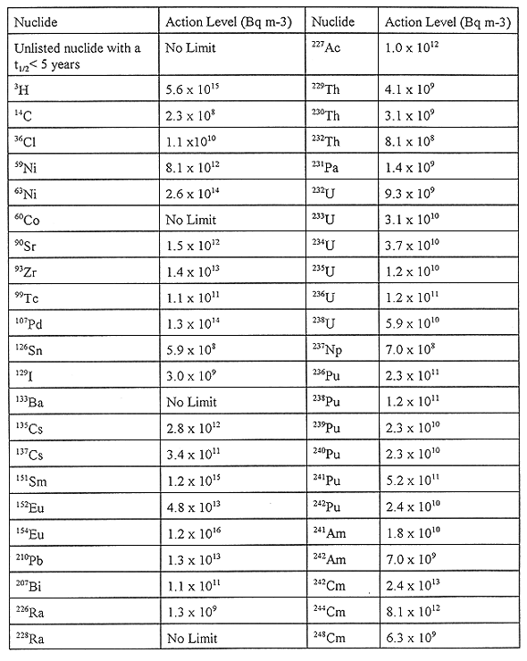 Radionuclide reporting requirements were changed to satisfy the Performance Assessment (PA) of the disposal site. The PA developed Action Levels for 44 nuclides (see Table II). If the activity concentration in the final waste form exceeds one percent of the Action Level, it must be quantified and reported to the disposal site. Additionally, if the activity concentration in the final waste form exceeds one percent of the total activity concentration, the radionuclide must be reported.