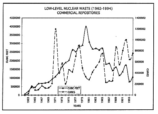 Radioactivity in Curies of Low-Level Commercial Disposal Sites - 1962-1994