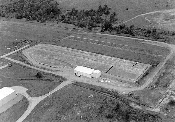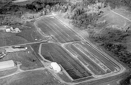 Bioengineering management is an innovative trench-cover approach consisting of rows of rigid panels to enhance runoff, coupled with vegetation planted between the rows to provide evapotranspiration (ET). Results from test lysimeters at the U.S. Department of Agriculture's Experiment Station in Beltsville, Maryland (5) have shown bioengineering management to be a successful method of controlling deep water percolation in humid environments. Details on the cover project can be found in a paper entitled A Bioengineered Management Technology Demonstration on a Shallow-Land Disposal Trench at West Valley, New York in WM'97 proceedings. An aerial photo taken in the fall of 1993 (Fig. 3), shows the geomembrane cover on Trenches 14, 13 and half of 12 along with the Bioengineering cover under construction on Trench 9.