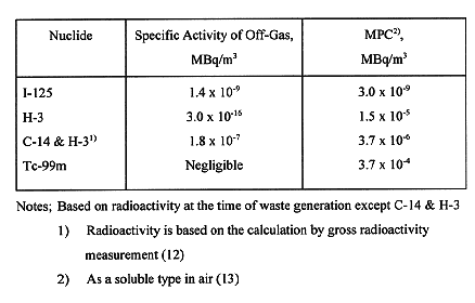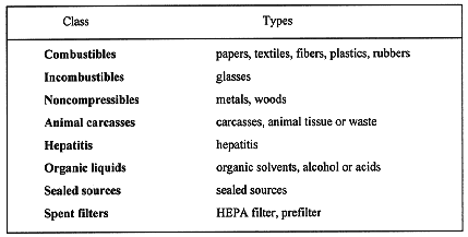 Table I Classification of Radioactive Wastes Produced from