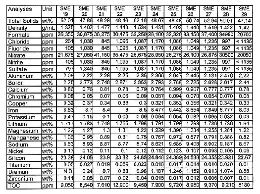 Through November 15, 1996 eleven feed preparation cycles (batches 19 to 29) have been processed. The SME composition and predicted glass durability and other properties are provided in Table I for these batches. Two of the batches (SME 24 and SME 28) required remediation to correct an unacceptable glass property, homogeneity. Homogeneity is a processing constraint which was added to the Glass Product Control Program as a result of the WQR data reviews. During this review it was determined that the glass could become phase separated, resulting in a leach rate approximately twice that predicted by the composition model. While the glass product is generally 8 to 16 times less leachable than the Environmental Assessment Glass sited in the WAPS it was decided to add a criteria to ensure the glass remains homogeneous. The homogeneity constraint, which essentially ensures sufficient sludge is present in the feed, was derived quickly and based almost exclusively on existing data. There was no testing completed that was designed for the purpose of deriving such a constraint. Thus, the resulting homogeneity constraint is considered very conservative.