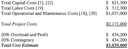 The total cost of the project, including profit and overhead, is estimated to be approximately $3 million. All equipment costs have been multiplied by a correction factor. Staff on the project site will include project engineers, heavy equipment operators, ISV control operators, skilled laborers, electricians and certified industrial hygienists (11). Table I outlines the major projected expenses for this project.