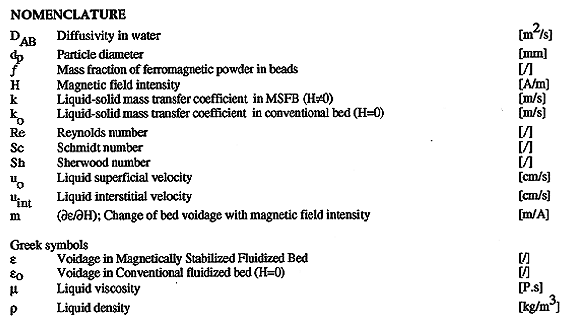 The Magnetically Stabilized Fluidized Bed (MSFB) is one of the most recent and novel chemical engineering developments in the area of fluid-solid contacting operations. It combines the best characteristic of the fluidized bed, like low pressure drop and the ability to handle solids without clogging due to sediment buildup, with excellent efficiency of the fixed bed in mass transfer between fluid and solid particles.
