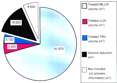 About 7% (9000 m3) of the initial total volume of MLLW was not included in the analysis because a preferred treatment process had not been specified by the sites. As characterization of waste continues and feasible treatment alternatives are identified, this volume is expected to decrease.