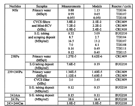 The prediction models for the DTM radionuclides in the primary water, CVCS filter, resin and deposits on primary circuit surfaces, have been qualified for 90Sr and for the actinides (partialy for 129I, 59Ni and 63Ni). The validation was performed by a comparison with measurement results from: