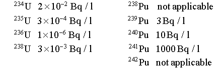 The following detection limits are then deduced for the different uranium and plutonium isotopes when a 50 ml aliquot sample of the homogeneous solution is used for the analysis :