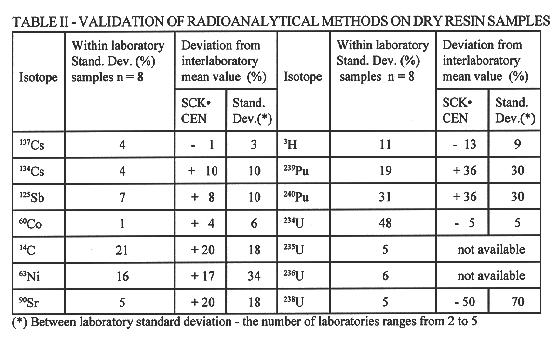 TABLE II Validation of Radioanalytical Methods on Dry Resin Samples