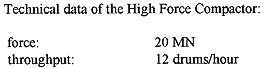 In the compaction plant, the sorted waste contained in 200-liter drums will be compacted by means of a high force compactor. The compacting room is designed as a first barrier to avoid the spread of contamination. During the compacting of 200-liter drums, the high force compactor is additionally closed by means of integrated lifting bulkheads. Any dust generates will be extracted.