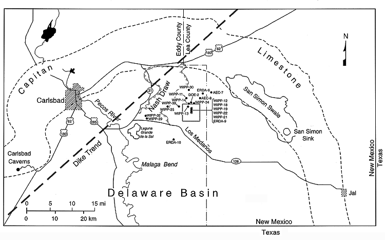The Waste Isolation Pilot Plant (WIPP) is a geologic repository for Defense Program-generated transuranic (TRU) waste. The repository is excavated at a depth of 2150 feet in the Salado Formation in southeast New Mexico, about 25 miles east of the town of Carlsbad (Fig. 1). Geotechnical and other scientific studies conducted since 1975 to confirm the suitability of the WIPP site are now essentially complete.