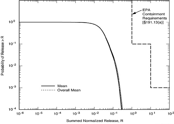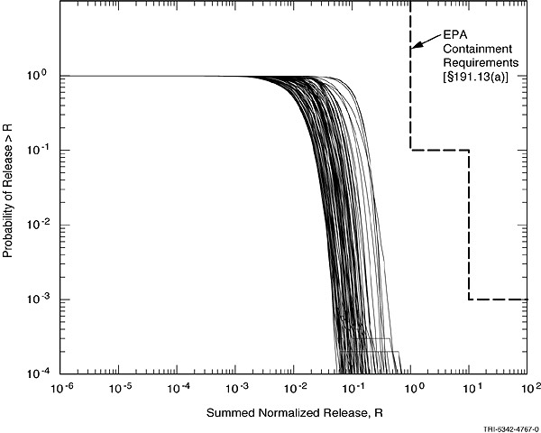 The EPA, in 40 CFR Part 191 (3), specifies the generally applicable radiation standards for the protection of public health and the environment for the disposal of TRU and high-level radioactive wastes. The complete text of the 40 CFR § 191.13(a) Containment Requirements follows: