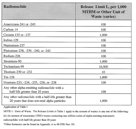 Table I Release Limits for the Containment Requirements (EPA 1994,