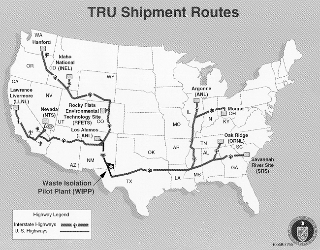 The Waste Isolation Pilot Plant (WIPP), a deep geological repository located in southeast New Mexico, has been constructed by the U.S. Department of Energy (DOE) to permanently dispose of all defense-generated radioactive transuranic (TRU) waste. Much of this waste is retrievably stored at several DOE sites across the U.S.; some will be generated from ongoing weapons production and environmental restoration activities.