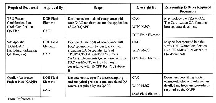 Table I Generator/Storage Site TRU Waste Program Documentation