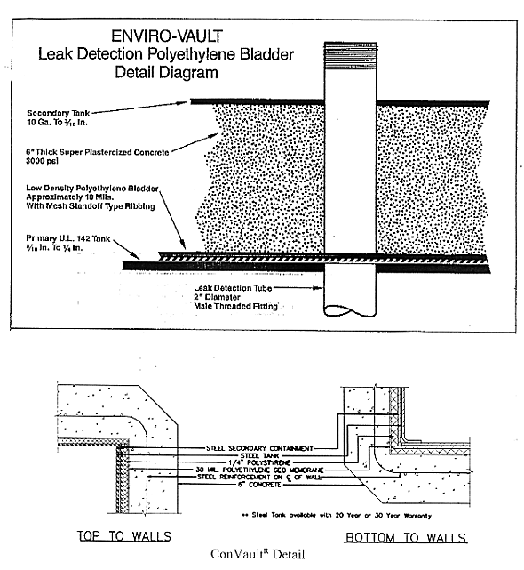 ASTs are becoming more common for the storage of petroleum products due to the regulations for USTs and the potential liability for releases from USTs. The primary concern with an AST is fire safety. The design evaluated for the AST was a UL Listed (8). "Protected Type" tank with a 2-hour fire rating. The AST is constructed with a double steel wall, membrane liner, and concrete insulation. The two designs used at RFETS are shown in Fig. 1. An AST requires adequate space to meet the regulatory spacing requirements from buildings and structures. The future removal of an AST is easier than that for a UST, and a removed AST has greater resale value. By closing the existing tanks in place, only minimal excavation for the AST foundation is required for the project.