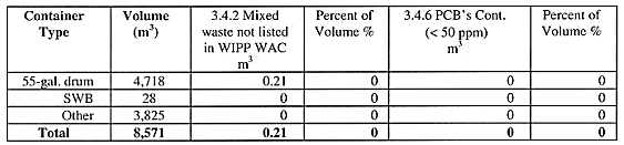 The only EPA Code identified with a drum of waste, which was not listed in Table 3.4.2.3-2 of the WIPP WAC was U080 "Methylene chloride." Identification of this compound and the disposition of this drum with respect to sending it to WIPP will be evaluated at a later data. No PCBs have been identified by the generators for TRU waste at LANL.