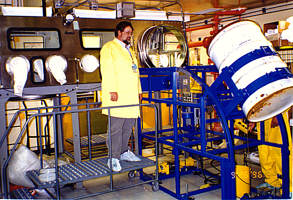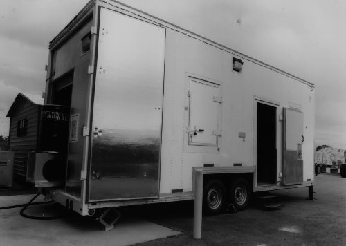 This system provides a completely mobile facility to allow inspection of the contents of closed waste drums and standard waste boxes. The trailer contains the operator control room, a lead lined shielded x-ray inspection chamber, multiple storage rooms and compartments, an AC power generator, a climate control system, an automated fire suppression system, and container handling equipment.(4)