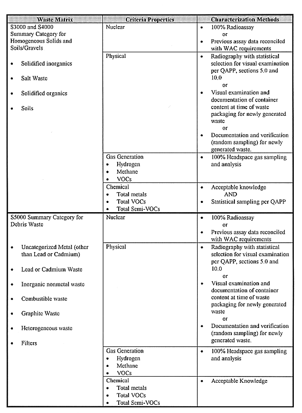 All waste destined for WIPP must be fully characterized to demonstrate compliance with the WIPP Waste Acceptance Criteria (WAC). All characterization must be accomplished in accordance with the requirements of the WIPP Characterization Quality Assurance Program Plan (QAPP). All sites intending to ship waste to WIPP must develop approved site specific Quality Assurance Project Plans (QAPP) that detail how that site will meet the requirements of the WIPP QAPP. Table I summarizes the WIPP characterization requirements and acceptable methods for completing that characterization.(2)