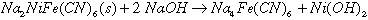 Aging of ferrocyanide waste is defined as thermal or radiolytic degradation of the ferrocyanide anion. This process breaks down the triple bond joining the carbon and nitrogen molecules and changes it into non-propagating compounds(4). Insoluble sodium nickel ferrocyanide, the major component of ferrocyanide sludges formed during the scavenging campaign, will dissolve in a caustic solution containing 0.01M or higher hydroxide ion. Dissolution of sodium nickel ferrocyanide results in soluble sodium ferrocyanide and a nickel hydroxide precipitate as shown in Eq. 2.