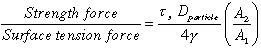 The surface tension force in these dimensionless groups reflects the