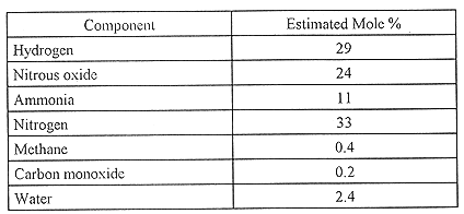Gas compositions in tank 241-SY-101 are well known. Pasamehmetoglu(13) analyzed a large body of gas composition data and provided a best and a conservative estimate for the composition of gases released during a gas-release event. The results are shown in Table I. Hydrogen is less than one-third the total gas volume. Nitrogen and nitrous oxide are similar in concentration, and ammonia is also a principal component.