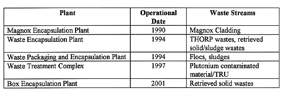 Table I Encapsulation Plants at Sellafield