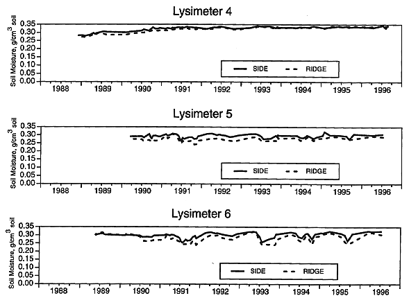 plot, largest variations in moisture content were during summer. Lysimeter 6 has