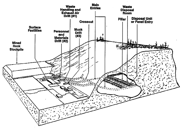 The authors believe that an intermediate depth drift mine, located several hundred feet below the ground surface, in a suitable rock formation, and situated in a location with some surface topographic relief, would represent a particularly suitable method for disposal of GTCC waste, as well as some LLW wastes from reactor operations and decommissioning. As will be discussed below in greater detail, a drift mine offers a better opportunity to attain performance and other environmental objectives. In addition, by removing some of the more hazardous and troublesome reactor wastes from the LLW stream, it might make it easier for host states and compacts to successfully site and operate disposal facilities to deal with the remaining wastes. Drift mines also offer other advantages over near-surface methods because the disposal units are deep underground and do not require the permanent commitment of large, potentially useful tracts of land.