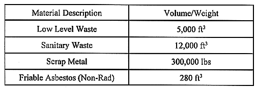 Table I Building 889 decommissioning Waste Streams