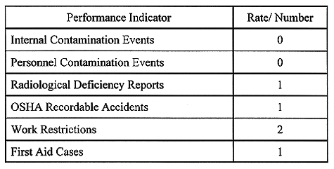 Table II Radiological and Safety Performance Indicators