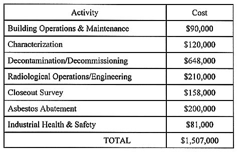 Table III Building 889 Decommissioning Cost Breakdown