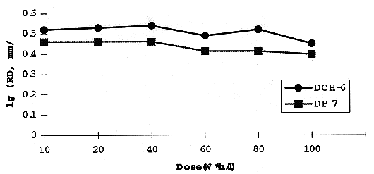 The effect of irradiation on RD for different aqueous solutions is shown on Fig. 2. RD is practically unchangeable when the irradiated extractant contacts concentrated (3 M) nitric acid solution. Perhaps the acidic radiolysis adducts promote low interfacial activity. Meanwhile, with dilution of the HNO3 solution, RD decreases evidently, and there is sharp drop of RD just for the first step of gamma-irradiation (up to 20 W*h/l). For comparison the same parameter of dicyclohexano-18-crown-6 (DCH-6) is indicated.