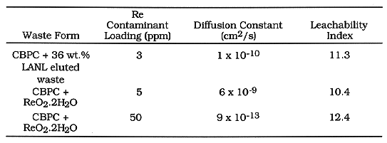 Table I. Diffusion Constants and Leachability Indices for Re in