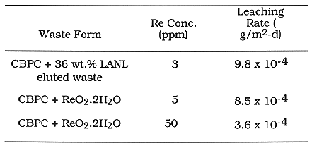 3 ppm. In addition, CBPC waste forms were fabricated in which Re was directly