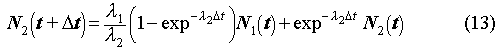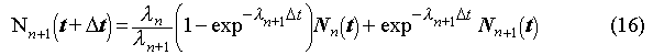 After reading the current from detector 1 and detector 2, the computer code updates the new values for the number of relevant decay products inside the detectors using the formula